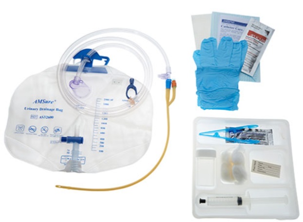 Product Detail : AMSure Foley Tray Bag, Preconn Hydrophilic Ctd 14Fr, 05cc, 2000mL Bag, 10cc Syringe, Nitrile Gloves, Sterile