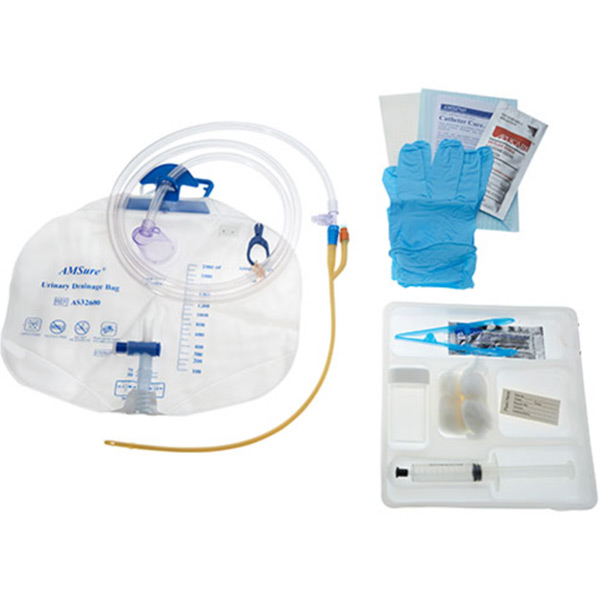 Product Detail : AMSure Foley Tray Bag, Preconn 100% Silicone 14Fr, 05cc, 2000mL Bag, 10cc Syringe, Nitrile Gloves, Sterile